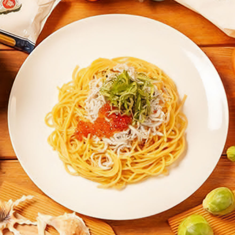 しらすといくらのバター醤油仕立て Shirasu & Ikura in butter & soy sauce