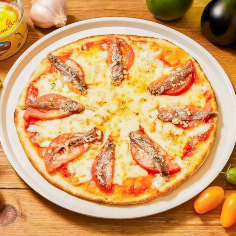 おつまみ系、ダントツ人気no.1のピッツァです。フィレアンチョビをふんだんに使った大人気のピッツァです。ビールやワインのお供に最高です。【アンチョビ・トマト・モッツァレラ・ガーリック】