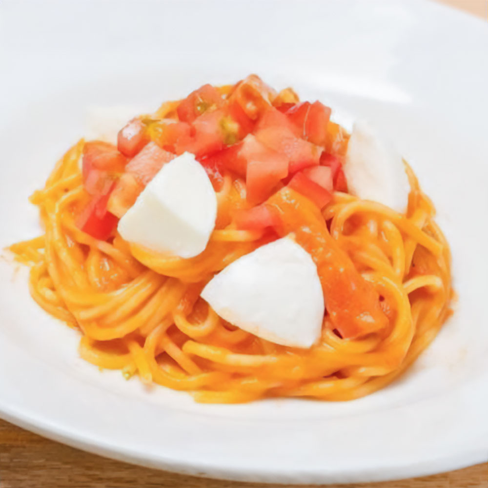 自家製のトマトソースに生クリームを合わせた特製ソースは、新鮮な完熟トマトの甘味と酸味が溶け合っており、生クリームのまろやかなコクをプラスしてトマトの本来の旨味を存分に味わえます。また、トッピングされるベーコンの香ばしくて塩味のある味わいがソースと絶妙にマッチしています。そして、このスパゲッティの醍醐味は、モッツァレラチーズです。たっぷりとかけられたモッツァレラチーズは、とろけるような柔らかさとコクがあり、加熱することでとろけ、その風味がスパゲッティ全体を包み込んでいます。やみつきになること間違いなしです。是非お試し下さい。