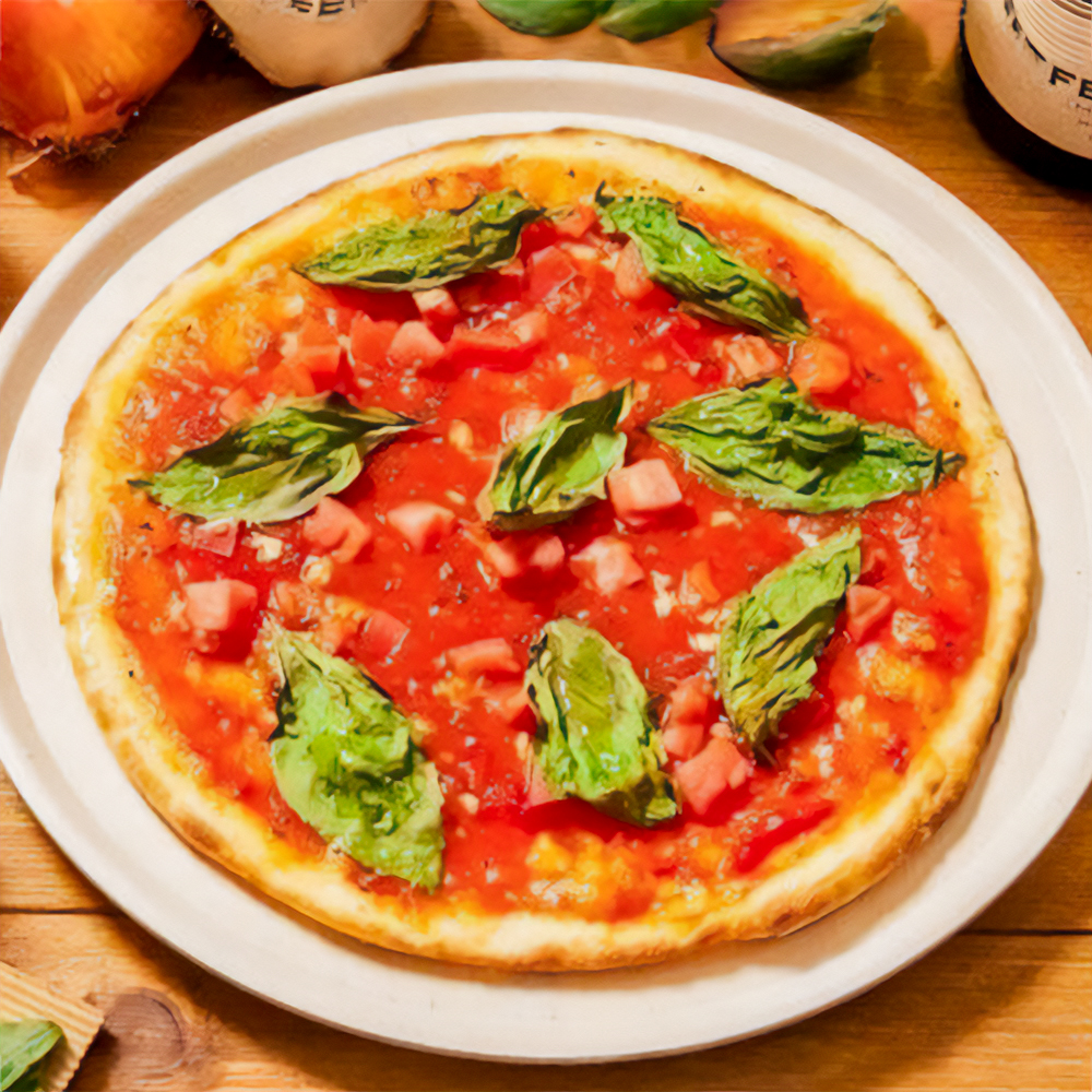 ピッツァの基本です。シンプルな分、素材の味が活きてます。【トマト・ガーリック・バジル】